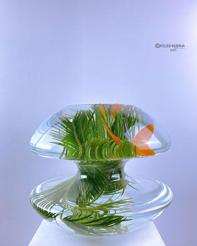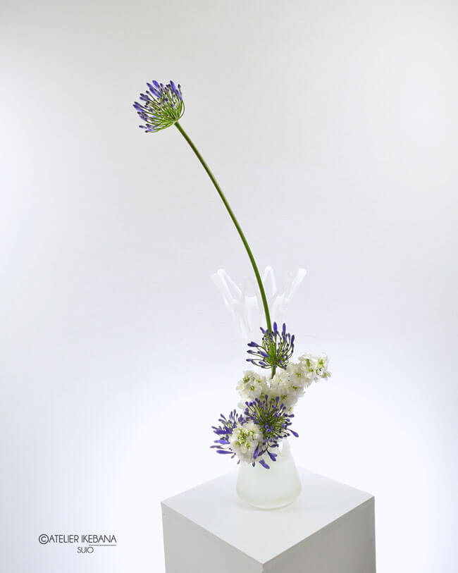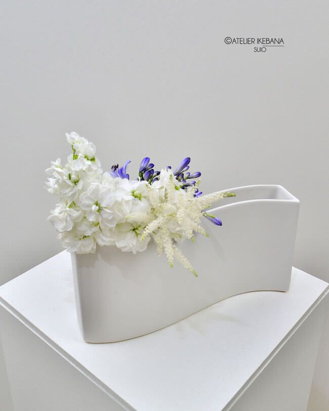 L’ikebana est l’art de la simplicité mais il a des règles strictes comme l’utilisation de l’espace, l’asymétrie, les lignes, la masse, les couleurs. Une composition ikebana est le fruit de l’union entre l’esprit de l’homme et une fleur. Puisque l’ikebana est un art, ressembler en tous points à la nature ne serait pas essentiel.
